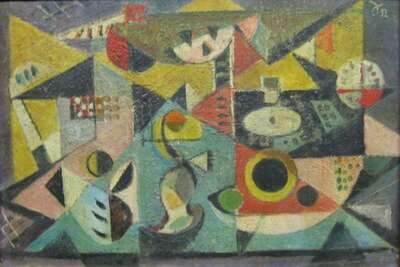 signed, titled and dated "1952", oil on paper laid on masonite