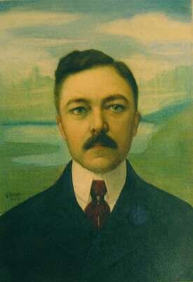 signed and dated "1909", watercolor and pastel on paper tacked to board