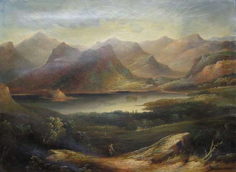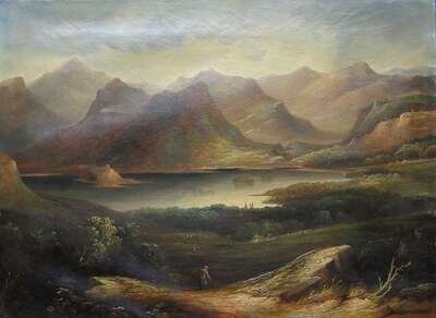 BRITISH SCHOOL (19TH CENTURY) TRAVELLER IN AN EXTENSIVE LANDSCAPE