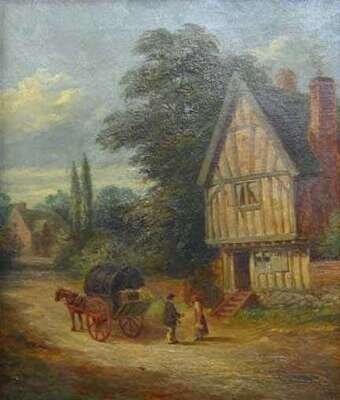 GEORGE HULL (BRITISH, 1823-1885) DISCUSSION OUTSIDE THE COTTAGE