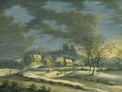 ENGLISH SCHOOL (19TH CENTURY) WINTER VILLAGE WITH CASTLE IN DISTANCE
