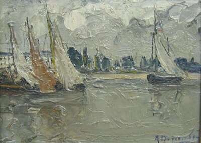FRENCH SCHOOL (20TH CENTURY) SAILBOATS ON A CLOUDY DAY