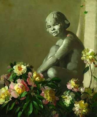HERBERT DAVIS RICHTER (BRITISH, 1874-1955) GARDEN NYMPH WITH PEONIES