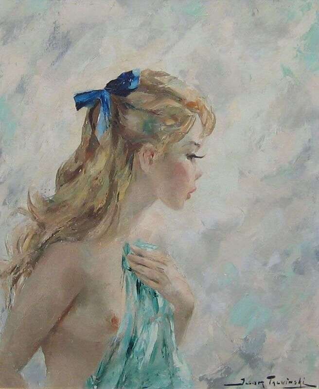IGOR TALWINSKI (POLISH, B. 1907) PORTRAIT OF A GIRL WITH BLUE RIBBON