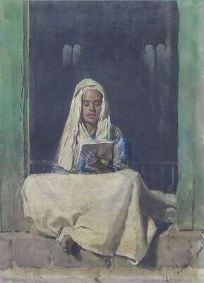 C* BISO (ITALIAN, 20TH CENTURY) READING IN THE DOORWAY