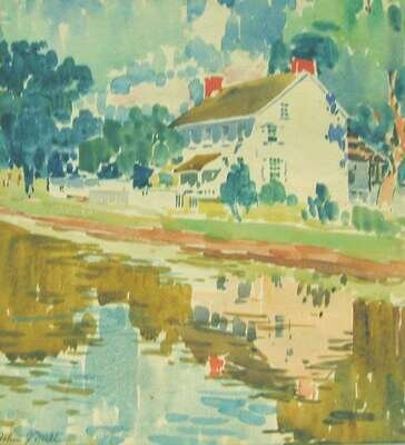 JOHN J. DULL (AMERICAN, 1859-1949) HOUSE ALONG A RIVER