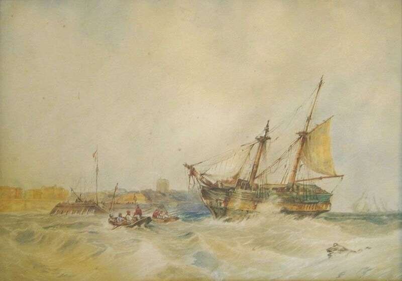 AFTER CLARKSON FREDERICK STANFIELD (AMERICAN, 1793-1867) SHIP ON ROUGH WATERS