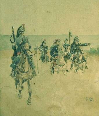 initialed "P.W.", watercolor on paper