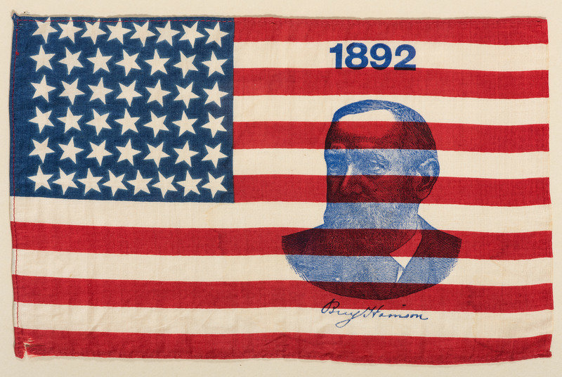 [FLAGS]. 44-Star American campaign flags promoting Grover Cleveland & Benjamin Harrison. 1892.