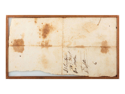 1p, approx. 7 3/4 x 4 in. housed under two-sided glass (dampstaining, creasing, toning). Docketed on verso.
