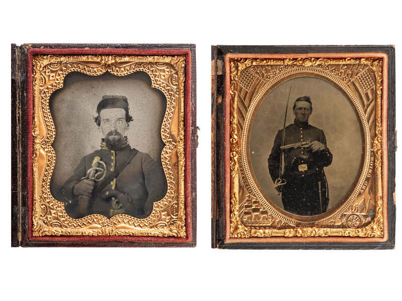 [CIVIL WAR]. 2 sixth plate portraits of cavalrymen armed with sabers and revolvers.