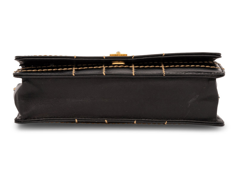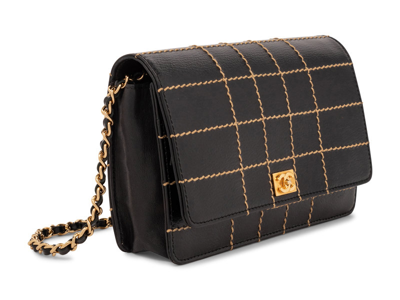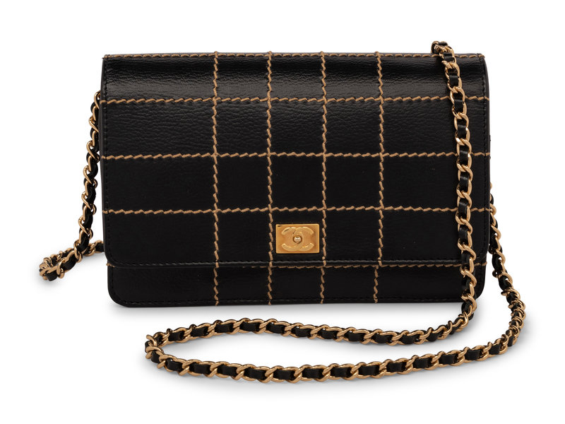 Chanel Surpique Wallet-on-Chain Shoulder Bag in Black Leather with Contrast Stitching and Gold-Tone Hardware