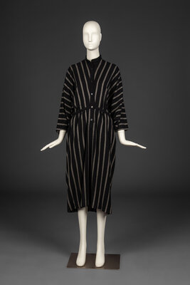 The inimitable, sculptural creations of Issey Miyake (1938-2022) bridge the gap between the gallery, runway, and street. Born and raised in Hiroshima, Miyake survived the atomic bombing at age 7 with a permanent limp, and soon after lost his mother to radiation poisoning. He became an advocate for nuclear disarmament in his later life. From a young age, Miyake was drawn to create and believed strongly in the interconnectedness of the arts. As far back as 1960, Miyake campaigned that clothing deserves appreciation for its design in the same way as architecture or furniture. After graduating from Tokyo’s Tama Art University in 1964 with a degree in graphic design, Miyake worked in Paris and New York under designers including Hubert de Givenchy and Geoffrey Beene. In 1971, he founded his eponymous design studio. Almost immediately, Miyake was lauded as a luminary. His work was soon everywhere from the cover of Artforum to the dancers of the Frankfurt Ballet.