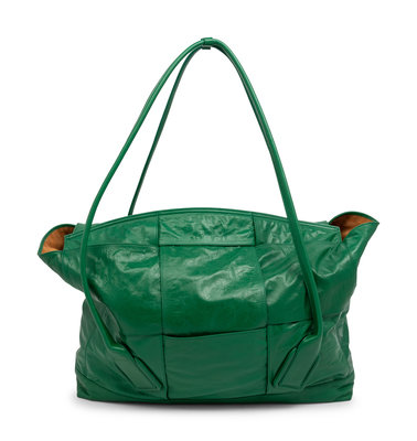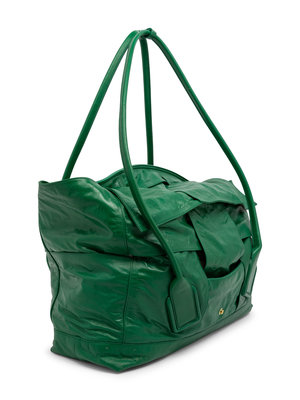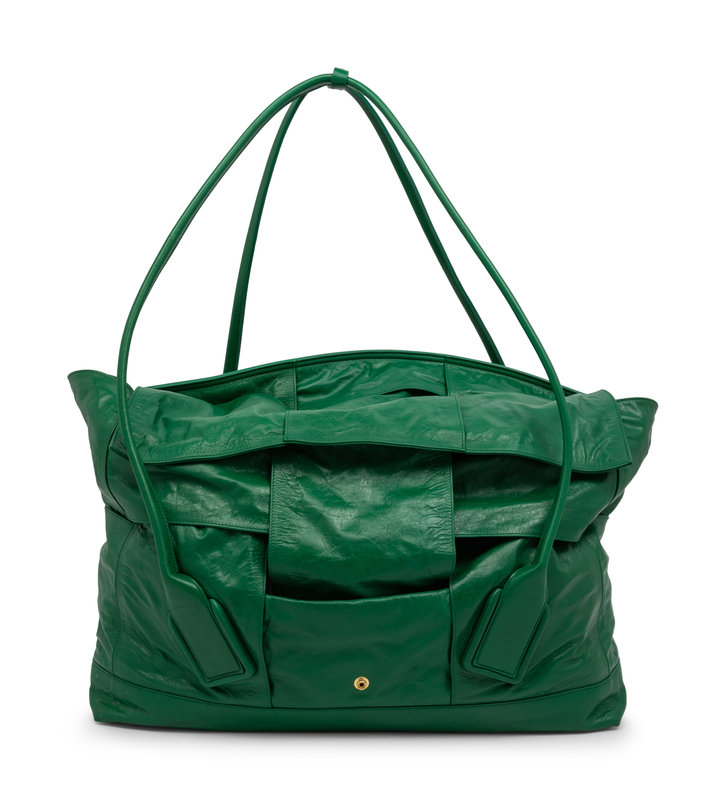 Bottega Veneta Arco Slouch Large Duffle Bag in Kelly Green Intrecciato Paper Calfskin Leather