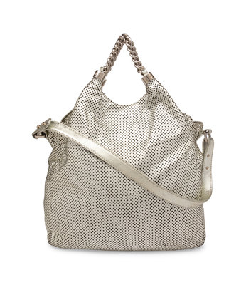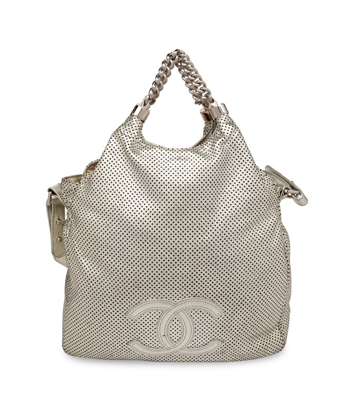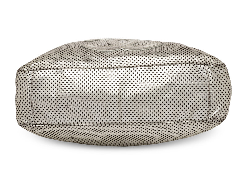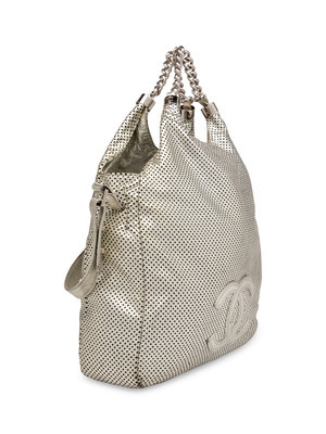 Chanel Rodeo Drive Hobo Bag in Metallic Perforated Silver Calfskin with Silver-Tone Hardware.