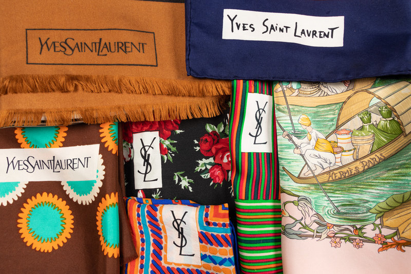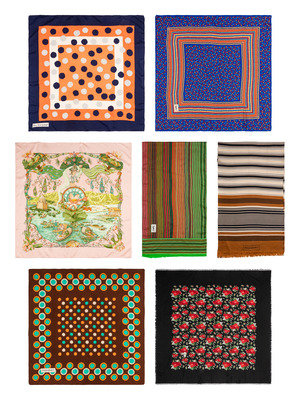A Collection of Seven Vintage Designer Scarves in Printed Silk Twill.