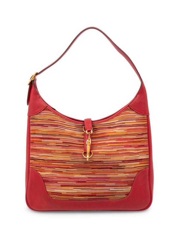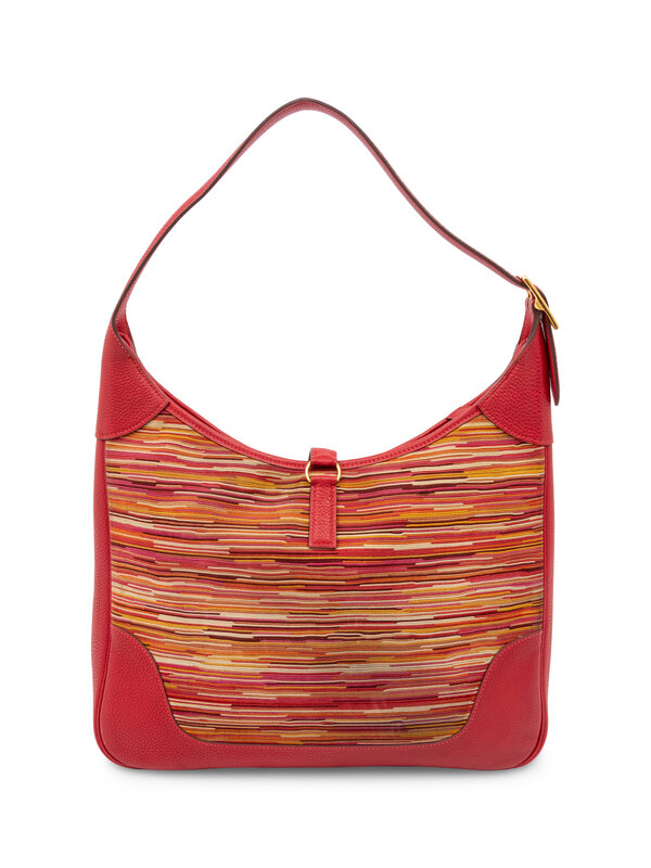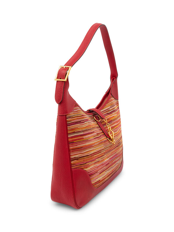 Hermès Trim Duo 34 Shoulder Bag in Multicolor Vibrato and Red Clemence Leather with Gold-Plated Hardware.