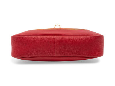 Additional Information: Gold-plated hardware; zipper closure; red lambskin lining; zippered interior sidewall slip pocket.