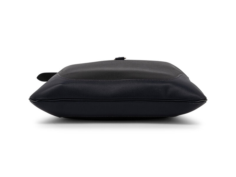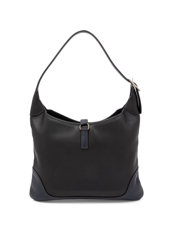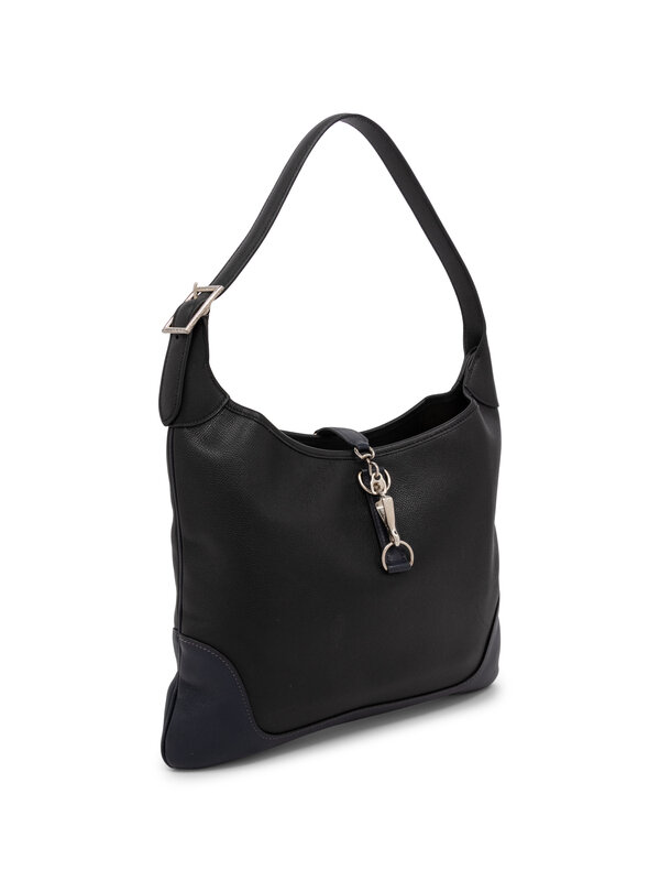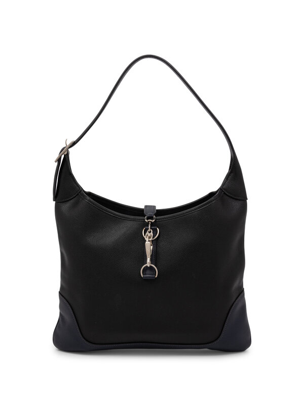 Hermès Trim Duo Shoulder Bag in Bicolor Black and Dark Blue Epsom Leather with Silver-Tone Hardware.