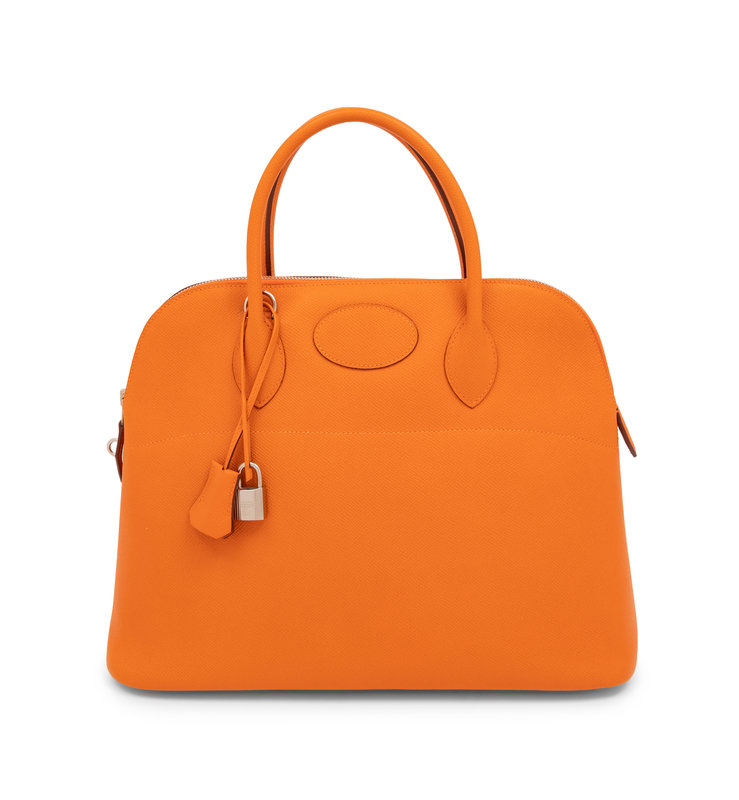Bolide 35 Handbag in Orange Epson Leather with Palladium-plated Hardware and Detachable Shoulder Strap
