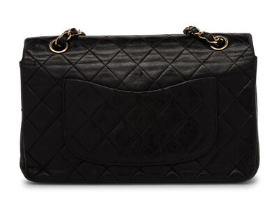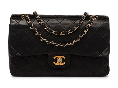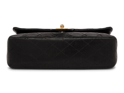 Chanel Medium Double-Flap Bag in Black Quilted Lambskin with Gold-Tone Hardware.