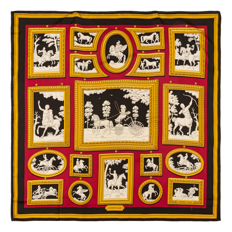 "Wedgwood" Scarf 90 in Printed Silk Twill with Rolled and Hand-Stitched Edges.