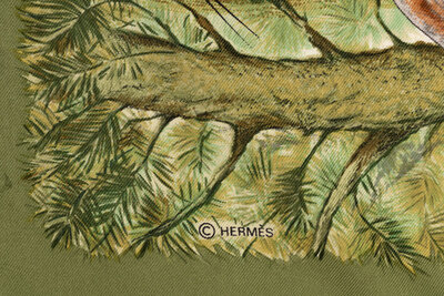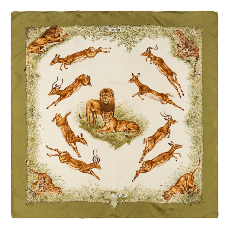 "Kenya" Scarf 90 in Printed Silk Twill with Rolled and Hand-Stitched Edges.
