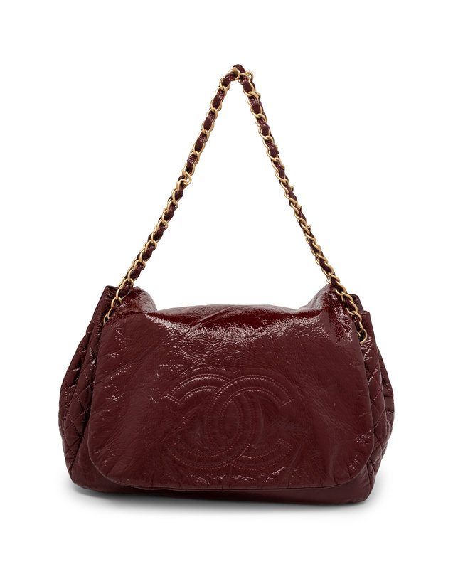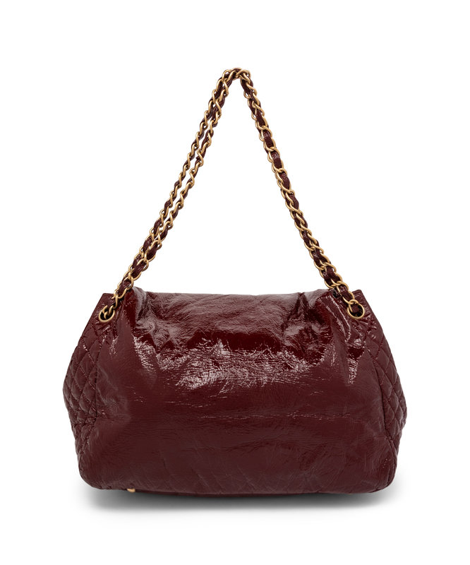 Chanel Rock & Chain Accordion-Style Flap Bag in Crinkled/Quilted Burgundy Patent Leather with Gold-Tone Hardware