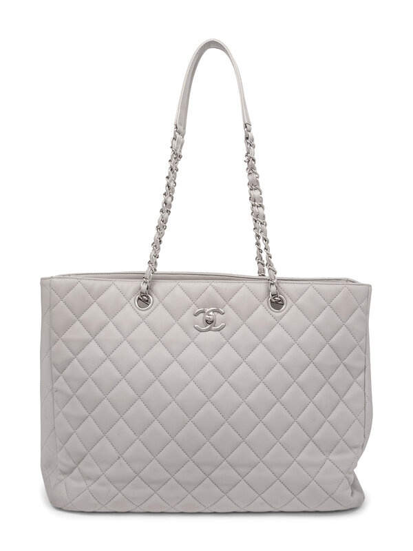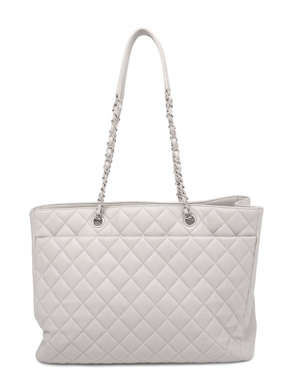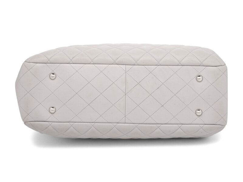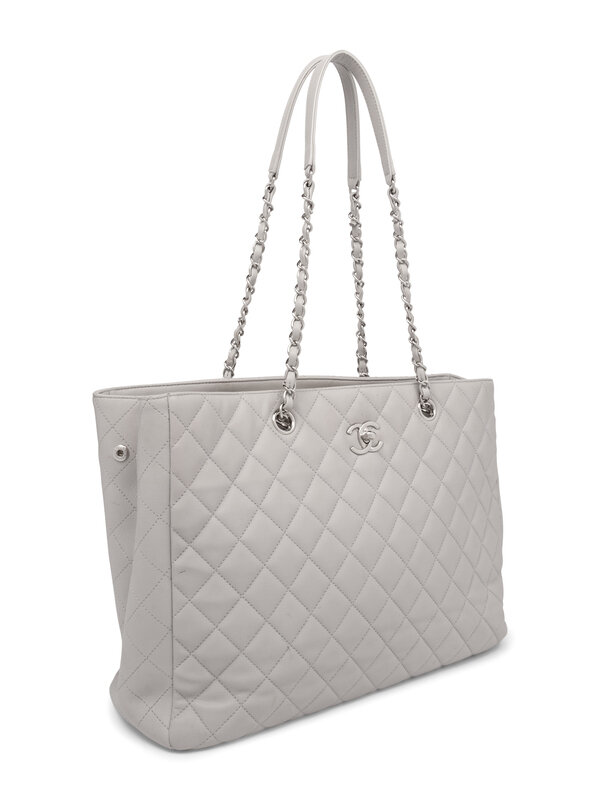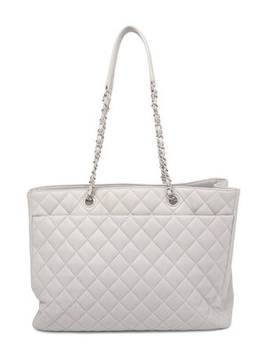 Chanel Classic Large Shopper Tote in Quilted Light Grey Leather with Silver-Tone Hardware