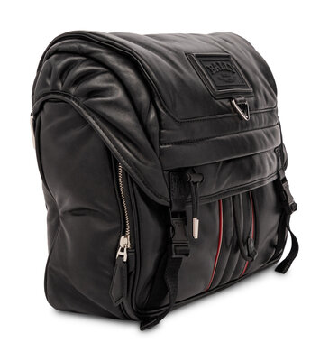 Bally Adil Messenger Bag in Black Lambskin Leather with Gunmetal and Silver-Tone Hardware with Red/White Piping Detail