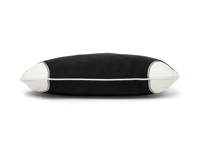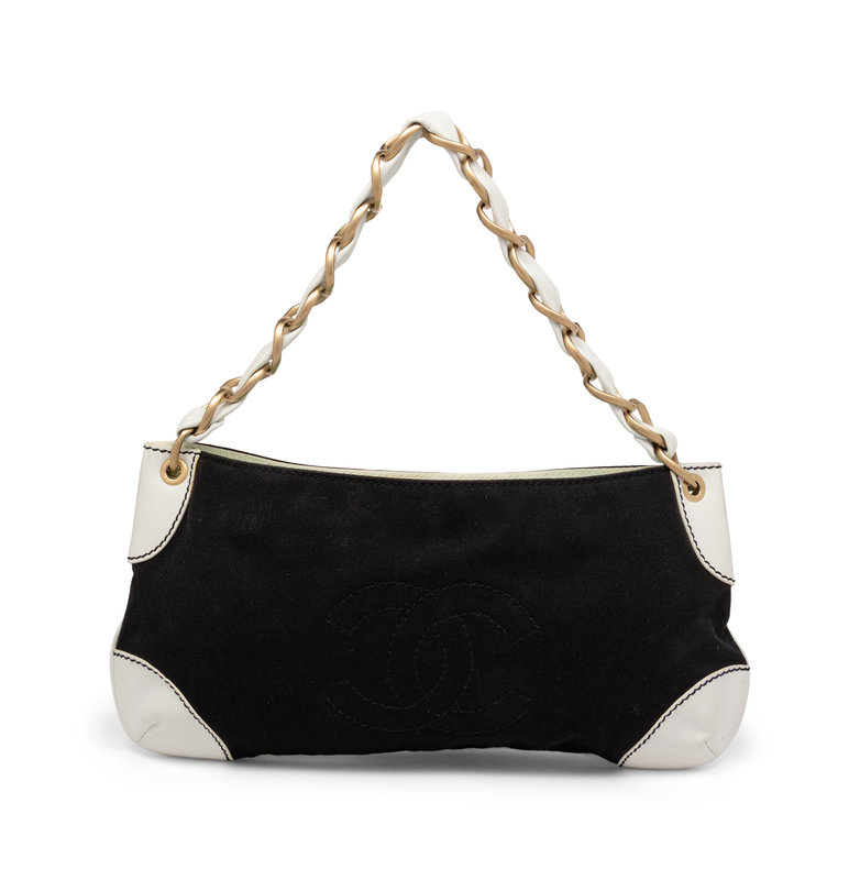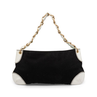 Chanel Medium Olsen Shoulder Bag in Black Canvas and White Leather with Brushed Gold-Tone Hardware