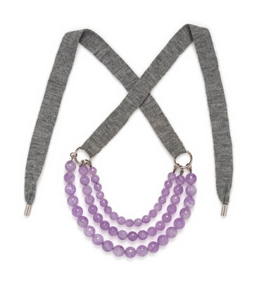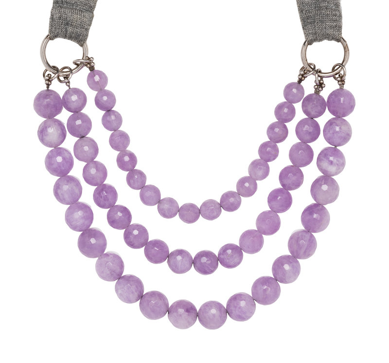 A Brunello Cucinelli Three-Strand Amethyst Necklace with Grey Cashmere Ties