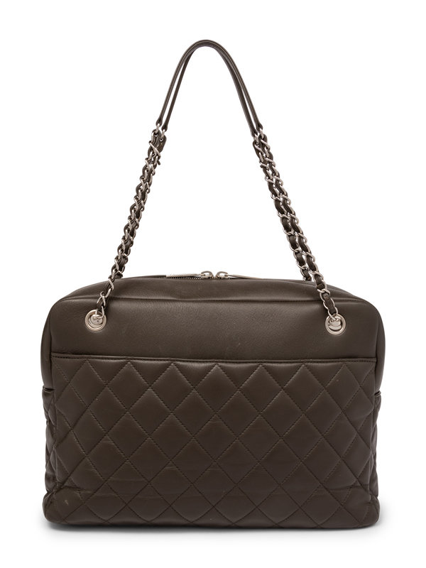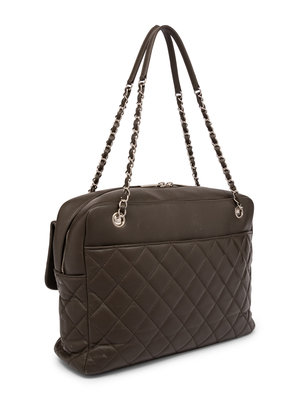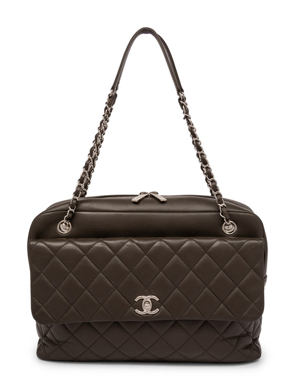 Chanel Quilted Flap Bowling Bag in Calfskin Leather with Silver-Tone Hardware