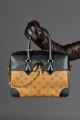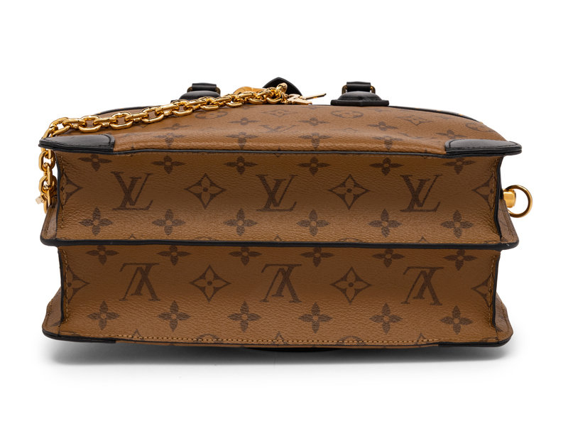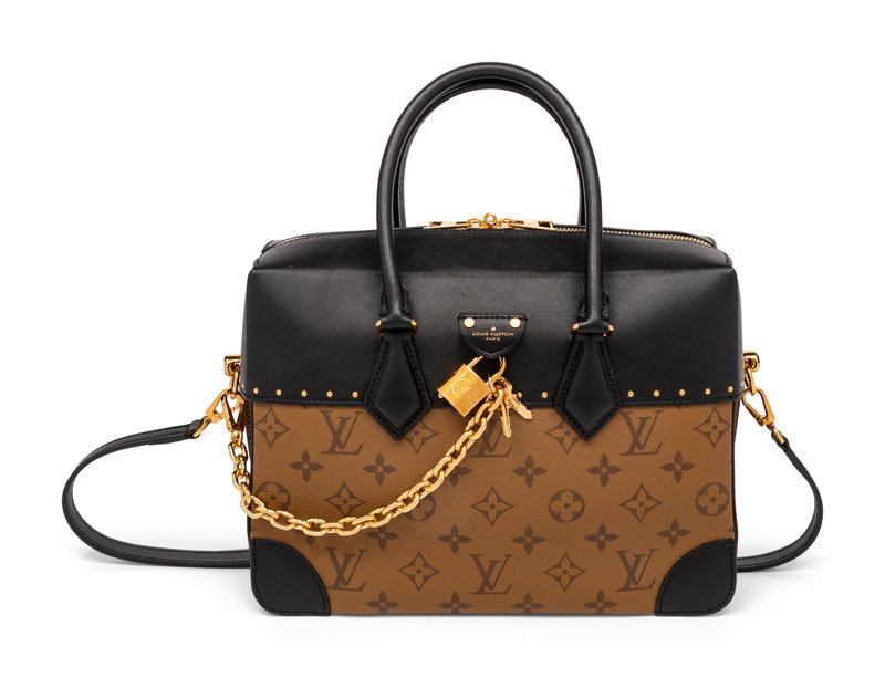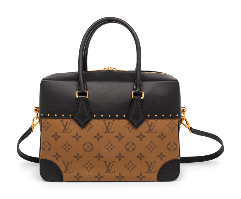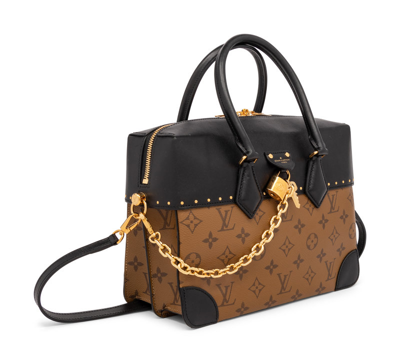 Louis Vuitton City Malle Handbag in Reverse Monogram Canvas and Black Leather with Gold-Tone Metal Hardware