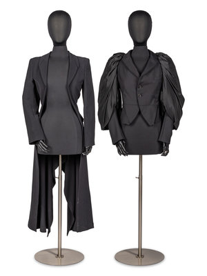 Perhaps no contemporary fashion house has transformed the discourse of fashion more distinctly than Comme des Garçons. Though she never formally trained in fashion design, Rei Kawakubo founded Comme des Garçons in 1969 and opened her first boutique a few years later in Tokyo. Her designs were received well in Japan, though international customers would soon find them much more controversial. In 1981, Comme des Garçons' debut in Paris received scathing reviews–– French critics called it “Hiroshima chic.” Kawakubo’s vision of design was unlike anything in mainstream Western culture at the time. Where popular fashion favored shoulder pads, wasp waists, and bright color, Comme des Garçons employed hitherto-unseen deconstructed silhouettes in all black. Despite short-sighted critics, Kawakubo’s wholly new approach to dressing the body would prove incredibly influential. Her title as the “mother of deconstruction” is well-earned. In the late 90’s, Kawakubo began to literally pull her creations apart and put them back together into deformed, avant-garde shapes, often with deliberately non-functional fastenings and sharply exaggerated silhouettes. In recent years, her creations have become increasingly sculptural, further pushing the boundaries of what fashion can be. Despite her early penchant for all-black, Kawakubo has since seen the light and works in a wider range of color.