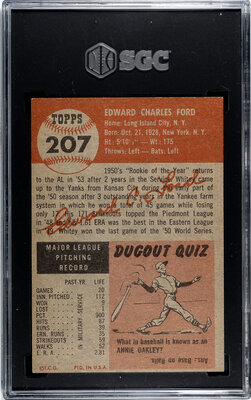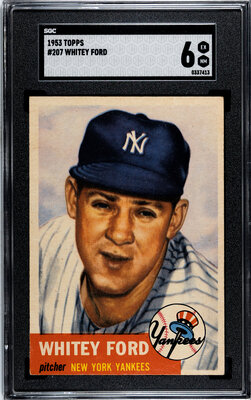 A 1953 Topps Whitey Ford Baseball Card No. 207 (SGC 6 EX/NM)