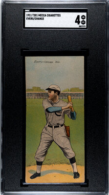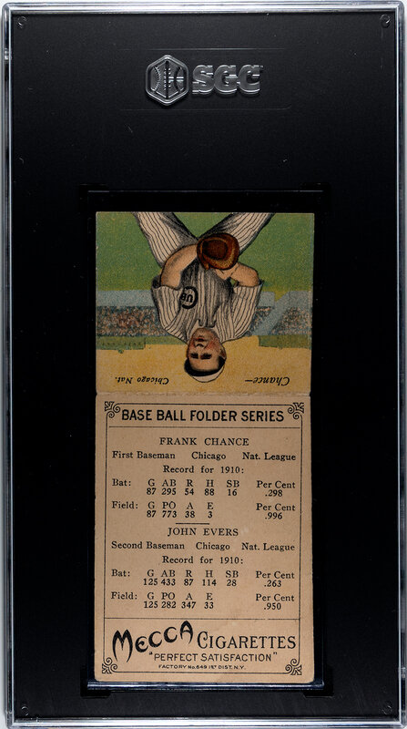 A 1911 Mecca Cigarettes T201 John Evers / Frank Chance Double Folder Baseball Card (SGC 4 VG/EX)