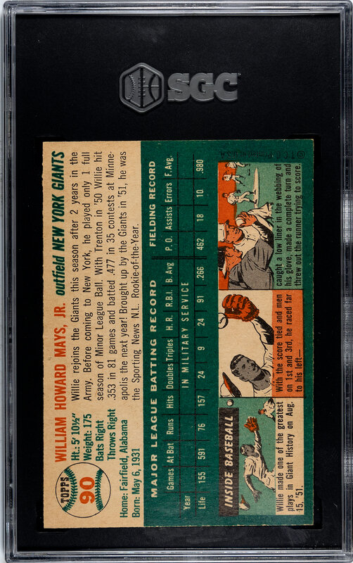 A 1954 Topps Willie Mays Baseball Card No. 90 (SGC 7 NRMT)