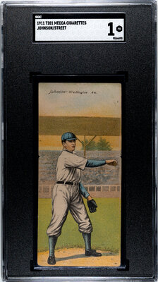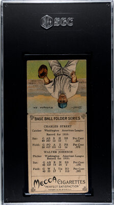 A 1911 Mecca Cigarettes T201 Walter Johnson / Street Double Folder Baseball Card (SGC 1)
