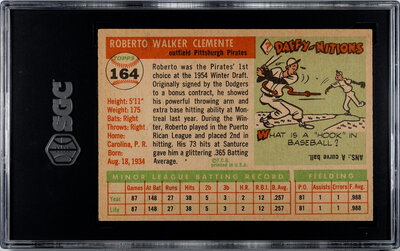 A 1955 Topps Roberto Clemente Rookie Baseball Card No. 164 (SGC 6 EX/NM)