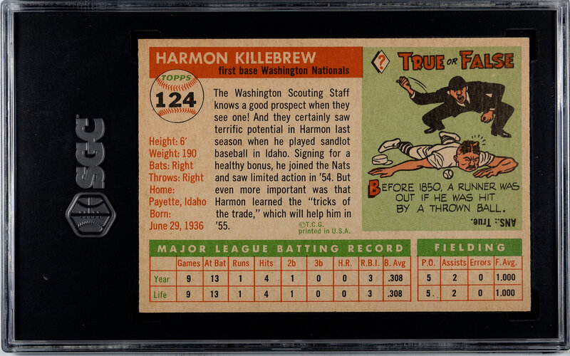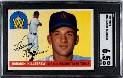 A 1955 Topps Harmon Killebrew Rookie Baseball Card No. 124 (SGC 6.5 EX/NM+)