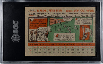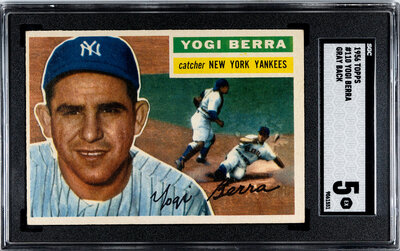 A 1956 Topps Yogi Berra Gray Back Baseball Card No. 110 (SGC 5 EX)