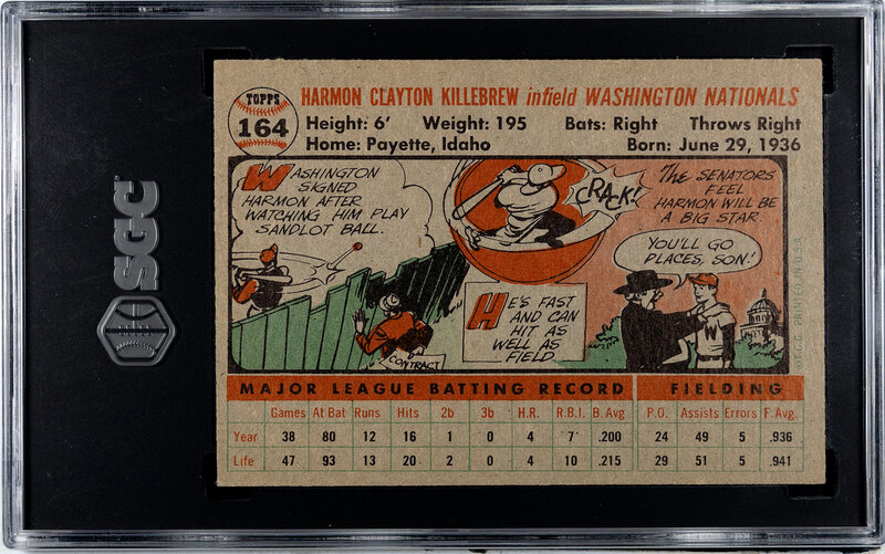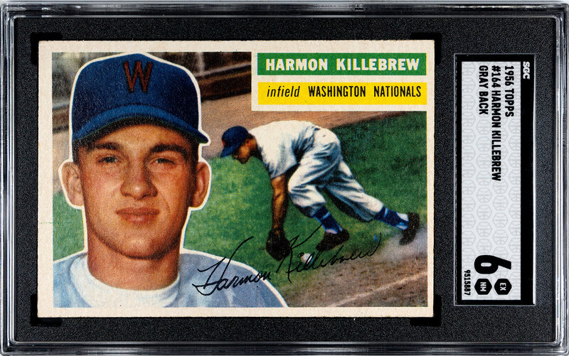 A 1956 Topps Harmon Killebrew Gray Back Baseball Card No. 164 (SGC 6 EX/NM)