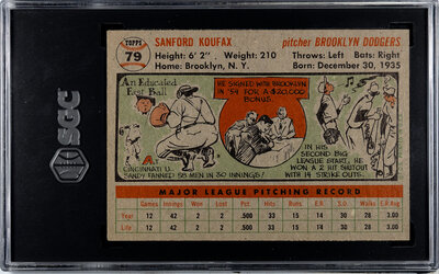 A 1956 Topps Sandy Koufax Gray Back Baseball Card No. 79 (SGC 6.5 EX/NM+)