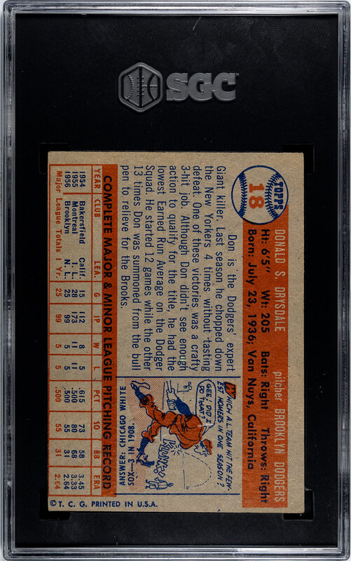 A 1957 Topps Don Drysdale Rookie Baseball Card No. 18 (SGC 5.5 EX+)
