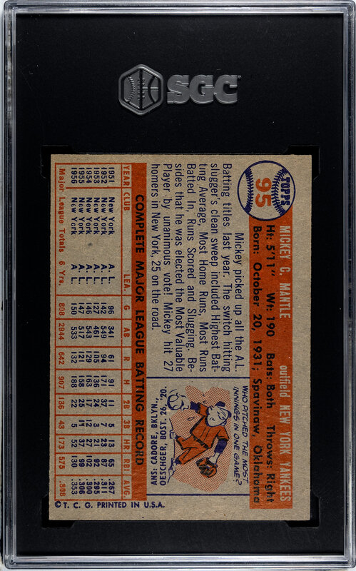 A 1957 Topps Mickey Mantle Baseball Card No. 95 (SGC 6 EX/NM)