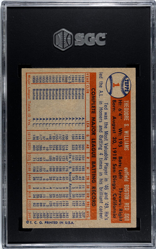 A 1957 Topps Ted Williams Baseball Card No. 1 (SGC 4.5 VG/EX+)