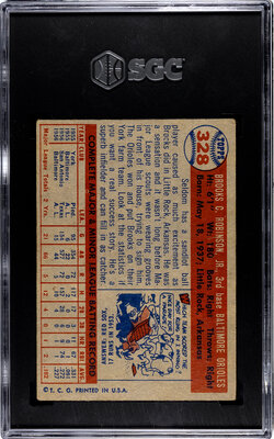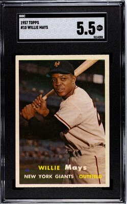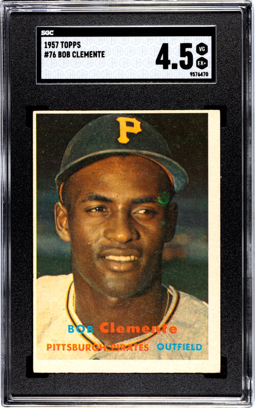 featuring complete set preserved in 9-card protective pages with the following issues graded by SGC: Willie Mays No. 10 (SGC 5.5 EX+), Hank Aaron No. 20 (SGC 4.5 VG-EX+), Frank Robinson No. 35 (SGC 4.5 VG-EX+), Roberto Clemente No. 76 (SGC 4.5 VG-EX+), Mickey Mantle No. 95 (SGC 1), Brooks Robinson No. 328 (VG-EX), Yankees Power Hitters No. 407 (SGC 4 VG-EX).
