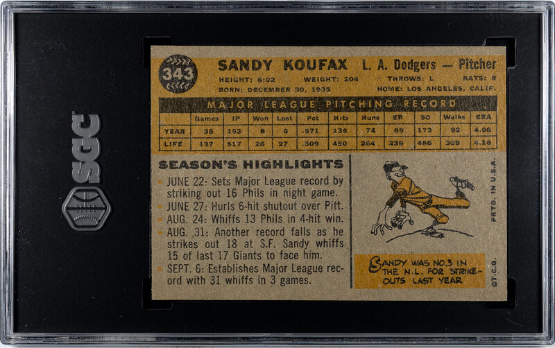 A 1960 Topps Sandy Koufax Baseball Card No. 343 (SGC 4.5 VG/EX+)