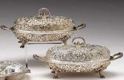 Pair of Jacoby & Jenkins sterling silver covered entree dishes late 19th century